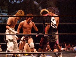 SUSUMUと猪熊と726とisamiが4人でチョップの打ち合い(右写真)。SUSUMUが藤岡をカバー、isamiカット。