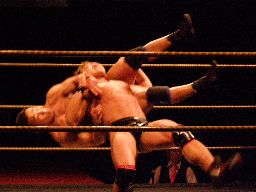 水面蹴りで倒してジャックナイフ(右写真)、カウント2。