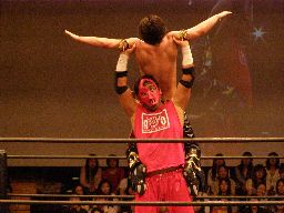 ついにKooのハワイアン・スプラッシュマウンテンが決まる(右写真)、しかしKUDOはカウント2で返す。