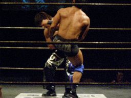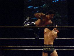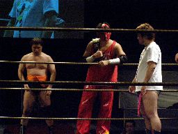そこにアントンとKooが。アントン「勝った奴出て来い!」ディーノがリングに上がる(右写真)。アントン「お前ら点数争いしてたのか?お前何点だ?」