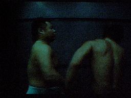 ヌルヌルを渡そうかどうか迷うマイケル(右写真)。
