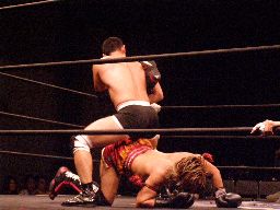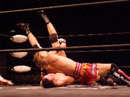 鳥羽のパンチをかわして正美逆さ押さえ込み(右写真)、カウント2。