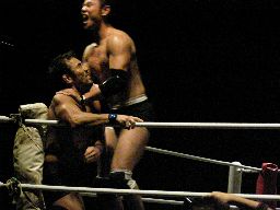 大鷲「お前とのタッグでやっていくぞ!」諸橋も気合を入れる。まだちょっと息は合ってないが(左写真)、いい感じのチームになるかもなあ。いちゃいちゃ路線じゃなくて。