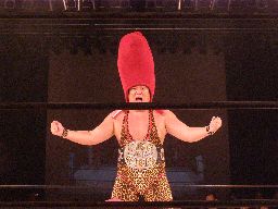 たらこ坂井がブレーンバスター(右写真)、頭部が取れる。坂井は星誕期にタッチ。たらこマン頭部を取り返す。