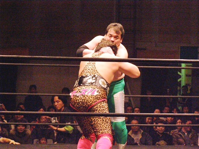 鼓太郎メキシカンストレッチ(左写真)、リリースして三沢にタッチ。