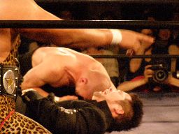 そして卍固めに(右写真)。ポイズンが「感動したぞー」と言いながらカット。
