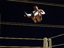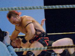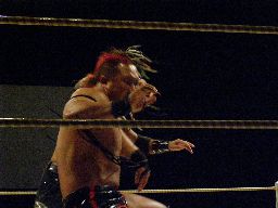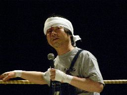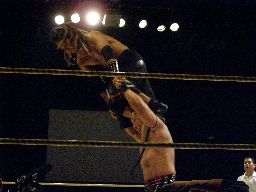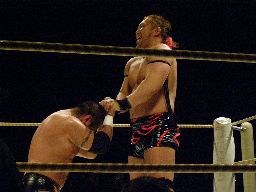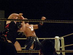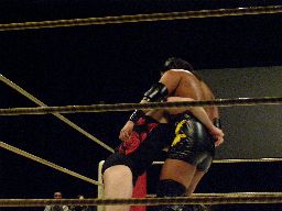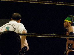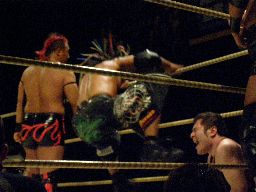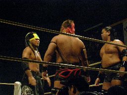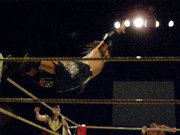 YASSHIコーナーに上ってビッグヘッド(右写真)、アントンかわしてサスケにタッチ。20分経過。