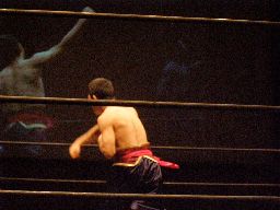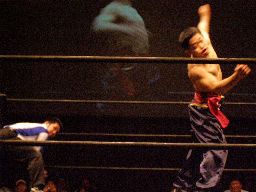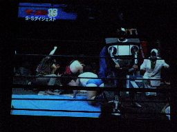 透明人間のパンチで趙雲吹っ飛ぶ(右写真)。透明人間カバー、趙雲2でキックアウト。ここでゴング。