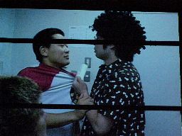 趙雲はなんとかしがみつく(右写真)、透明人間ロープに押し込む。透明人間パンチ、趙雲かわす。