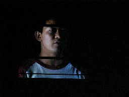 碇シンジのように暗い中一人座り込む坂井(左写真)。