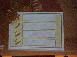 仕方なく2問目に。「イノシシ」であいうえお作文(右写真)。やっぱり誰も手を挙げない。