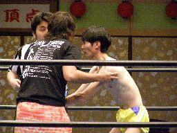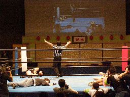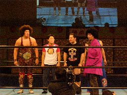 亜門「リングに集合!先鋒はアントン、次鋒は趙雲で、副将はペドロで、大将は坂井、あれ、一人足りないな。日韓って試合するのか?アイスリボンとかでやってんだよな、確か。中堅誰かいないか?この会場にいるプロレス経験のある奴集まって!」