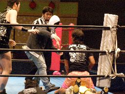 ゴングと同時に全員で藤岡を攻撃(右写真)。