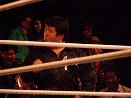 ロープに振ってジャンピングニー、そして「オー!」(右写真)