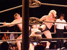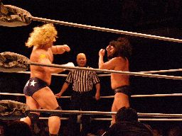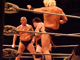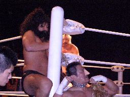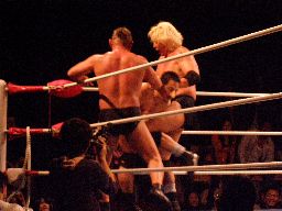 ハンセンにパンチ連打(右写真)、ハンセンはミノディにタッチ。