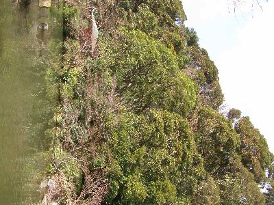 道路を渡って向かいの櫛崎城跡に。前回と違うルートで上ろうとしたら道が途中でなくなっていた。しかし人が通った後らしく踏みしめてある場所はあったのでそこをたどると前回は見ていない石垣が。これはらっきー。