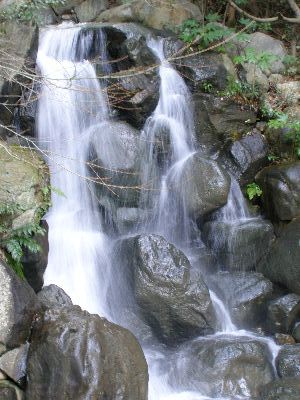 滝。庭園の中の茶室で下関市水道局主催のお茶会をやってたので参加すると水道局が出している水「ああ!関露水」(1本100円)をもらった。なんつーネーミングだ。