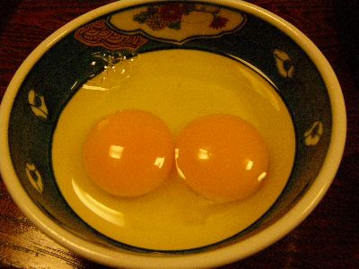 雑炊用の卵が二卵性だった。