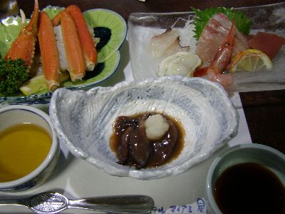 夕食。カニとかホタルイカとか。