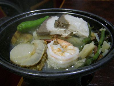 ブリやホタテの陶板焼き。風呂は一回だけ。