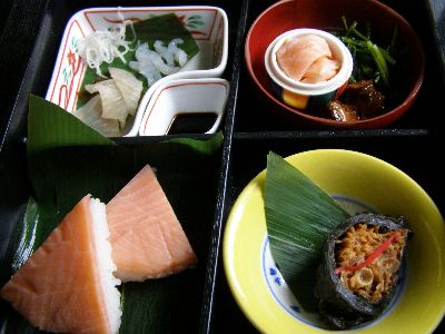 昼飯はまた富山駅の駅ビルで富山名産弁当。こないだ入った店よりはだいぶマシ。