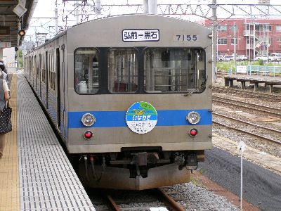 弘南鉄道の車両は東急の払い下げ。なので吊り革の広告は109。