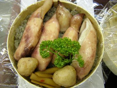 すぐに鳥取城に行っても開いてないので「但馬」の国盗りに山陰本線で東に行くことに。鳥取駅は朝7時前から駅弁を売っていた。ありがたい。買ったのは「いかすみ弁当黒めし」。アベ鳥取堂の平成16年の新作。「駅弁ひとり旅」によるとなんかの番組でベスト1にも選ばれたらしい。確かにうまい。