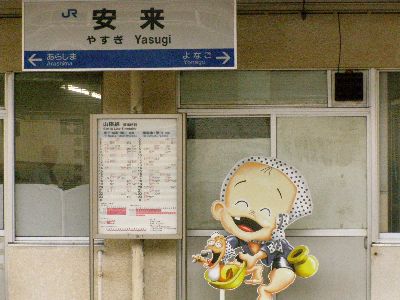 安来駅着。やはりどじょうすくいなのね、シンボルは。バスの時刻を見ると次は12時54分。ここで40分も時間を潰すのももったいないのでまたタクシー。