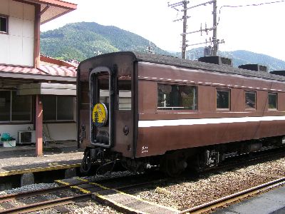 リフトで麓に降り、スタンプGETして津和野駅まで歩く。停まっているのはSLやまぐち号の客車。