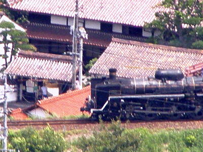 リフトの山上駅に着くと「もうすぐSLが通る」と係員に言われたので待機。しばらくして「貴婦人」C57が津和野の町に。