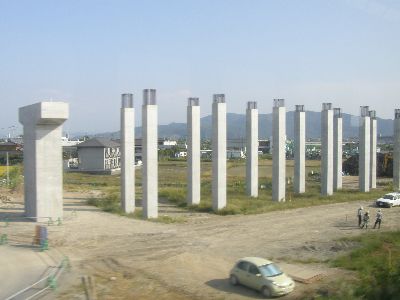 博多からリレーつばめに乗って新八代に。鹿児島本線に沿って九州新幹線の建設が急ピッチで進んでいる様子。