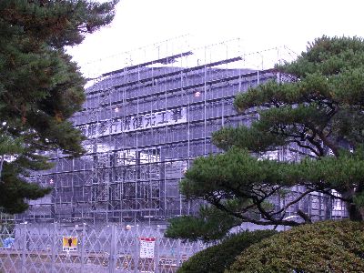 奉行所復元工事中。こんなにデカかったのか!完成した後また来よう。