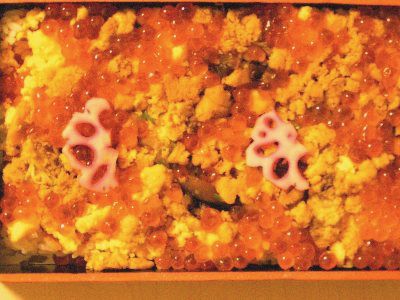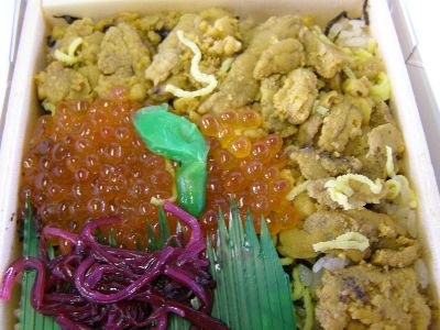 昼飯は特急白鳥内でうにいくら弁当。