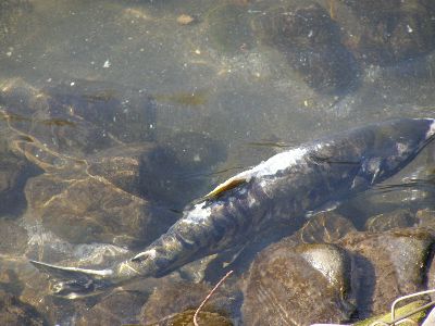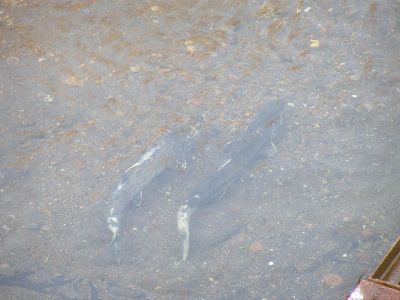 何匹かは堰を乗り越えて生まれた(放流された)川の上流へと向かっていた。不思議なもんだ。
