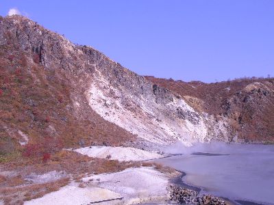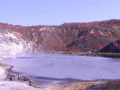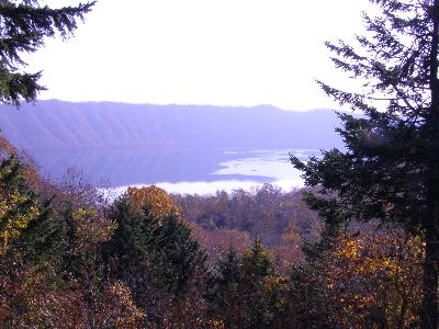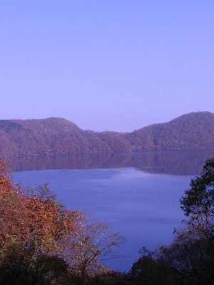次は運転手さん最大のお勧め倶多楽(クッタラ)湖。バスの入れない山道のため来る人はそう多くないとのこと。快晴のため湖面が鏡のようになっていた。