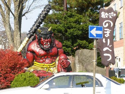 登別寄り道の最大の目的である温泉街入り口の鬼の像。「水曜どうでしょう」212市町村カントリーサインの旅で映った。
