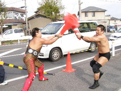 名古屋からはまた在来線で東刈谷に。今日は東刈谷のプロレス好き居酒屋「とうちゃん」の10周年イベントということでDDTが試合提供なのだ。メインの開始予定時刻は14時、会場は「朝日小学校近くの兼松敷地」ということだったので小学校を目印に駅から歩く。途中「ちゃんこ新山」発見。ここも一度は行ってみたい。目印の小学校は簡単にわかったが、会場の「兼松」がどこやらわからない。歩いてると音楽が聞こえてきたのでそこに違いないと思って進むとリングが見えた。間に合った。「兼松」というからあの商社かと思ったら全然関係なかった。試合は1試合(行く前にもう1試合高井の試合とちびっこプロレス教室があったらしいが)。観戦記はこちら。見終わったらさっさと東刈谷に戻り東海道線で名古屋に。新幹線指定取ろうとしたら売り切れ。しかしエクスプレスのポイントがたまっていたのでタダでグリーン券が買えるというのを利用、ゆったりと帰京。