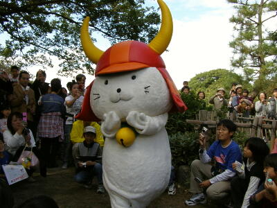 本丸で待ってると10時30分にひこにゃん登場。大人気。