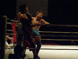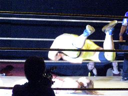 isamiが持ち上げて田村をエプロンに出す(右写真)。