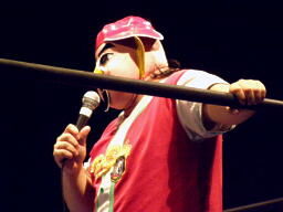 菊タロー「皆さん、本日は楽しんでいただけましたか?残り1ヶ月を切ってから、オレは何をこんなアホみたいに働いとるんやろ?と思ってました。おとといから2日徹夜して、ようやく3時間くらい寝て、ガタガタのまま開催したんですけど、本当にマッスル坂井、高木三四郎を始めDDT、そしてこんなちっぽけな菊タローなんていうカスみたいなレスラーに半熟英雄、天体戦士サンレッド、ストリートファイターW、メタルギアソリッド4なんて素晴らしいコンテンツの皆様が協賛してくれるなんて思ってませんでした。会場に集まってくれた皆さん、参戦してくれた選手、みんなが揃ったからこそアキバプロレス無事開催することができました。これからもアキバプロレスどんどん続けて行きたいと思います。今度は来年のゴールデンウィークに秋葉原に帰りたいと思います。」