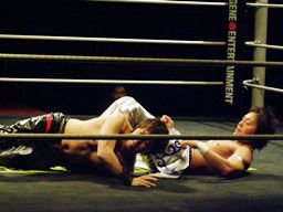 大石が正岡にミラクルエクスタシー、正岡はフランケンシュタイナーに切り返す(右写真)、カウント2。