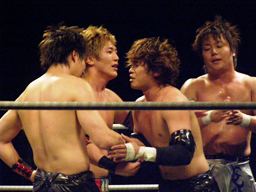HARASHIMA入って正岡とダブルのエルボー(左写真)。
