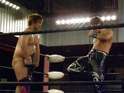 ポイズンが安部に仕掛けるのを見ながらディーノにかけてみる高木。しかし「ちっとも痛そうじゃないじゃねえか!」ということでポイズンにスタナーをかまして「パス!」。高木早くも2回目のパス。