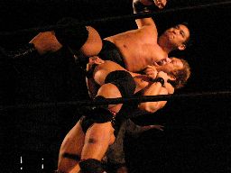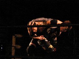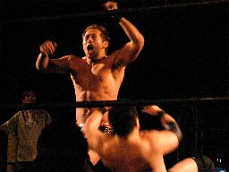 高木にもパンチ、高木がマイケルに覆いかぶさる形で倒れこむ(右写真)、レフェリーはカウント取る、カウント3。