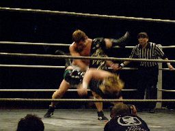 ウラノまたボディスラム(左写真)、KUDOにタッチ。KUDOボディスラム、ウラノにタッチ。