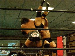 大鷲と諸橋はアントンにチョークスラムとバックドロップの合体技(右写真)。