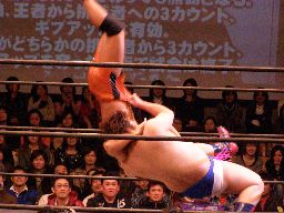 ディーノはKUDOにゴッチ式男色ドライバー(右写真)、3カウント。