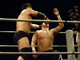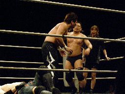 試合終了、客出しの後も控室から高木の「なんでー?」とHARASHIMAの「鍛えているからだー!」が延々と聞こえていた・・・。