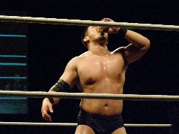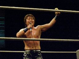 HARASHIMA高木にスワンダイブエルボー(右写真)、カウント1。