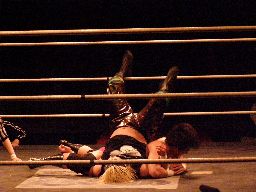 ウラノウラカン・ラナ(左写真)、佐々木エビ固めに切り返す、カウント2の応酬。